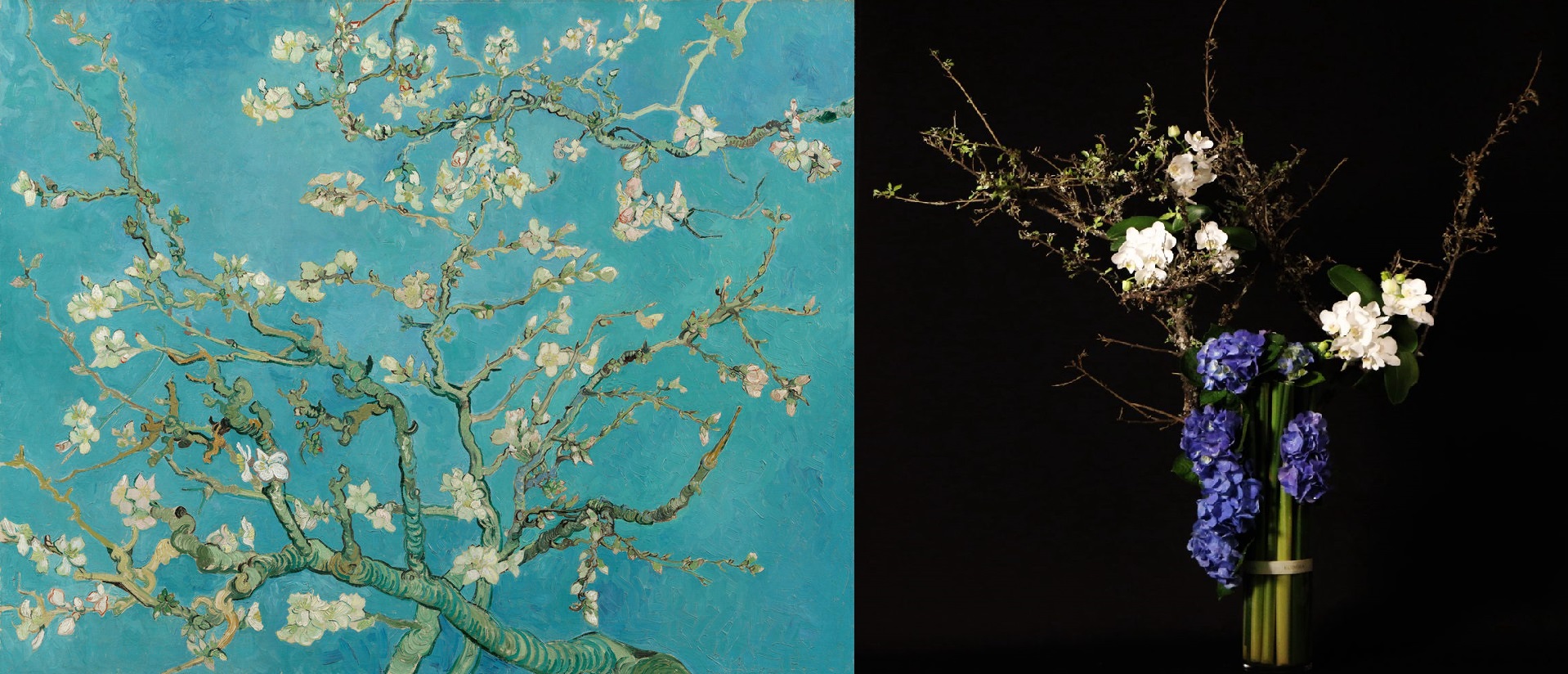 而梵谷 使用的藍..我們則是用繡球花的藍來做鋪陳
